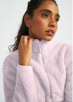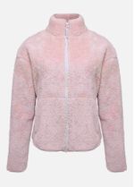 O casaco é todo feito com tecido sintético texturizado, oferecendo muito conforto.