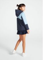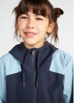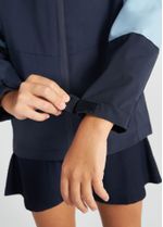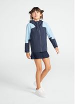 A Jaqueta Infantil Bicolor Unissex é ideal para proteger os pequenos nos dias de frio. Feita em tecido corta-vento encorpado, conta com capuz ajustável, gola alta e regulagem nas mangas com velcro para melhor vedação térmica. O modelo possui bolsos laterais e um design moderno com recortes bicolores. O fechamento em zíper selado com puxador personalizado Track&Field garante proteção extra.