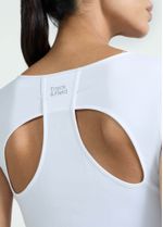 O recorte vazado nas costas é apenas o primeiro detalhe que distingue esta peça em Thermodry. Mais do que uma marca exclusiva da Track&Field, a sensação ímpar ao vestir este tecido tem sido, de facto, uma das nossas marcas registadas. A sua estrutura em microcrepe com filamentos ultrafinos forma uma porosidade única para a troca e conforto térmico, além de proporcionar um contacto suave com a pele como nunca antes visto.
