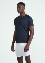 Quem experimenta os diferenciais desta t-shirt masculina de manga curta sabe o que acontece na hora do treino. A peça, em tecido com a tecnologia Outlast®, desenvolvida para a NASA, contém microcápsulas que mudam de fase, absorvendo ou liberando calor à medida que a pele aquece ou arrefece, garantindo assim a sensação de temperatura agradável durante toda a prática desportiva – além de controlar a humidade mesmo antes de ser produzida.