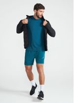 Camiseta masculina manga curta com decote redondo, cava tradicional, costura do ombro deslocada para valorizar a região do trapézio, tecido leve com textura, toque gelado e detalhe na manga e logo refletivos.