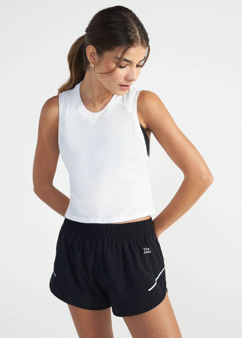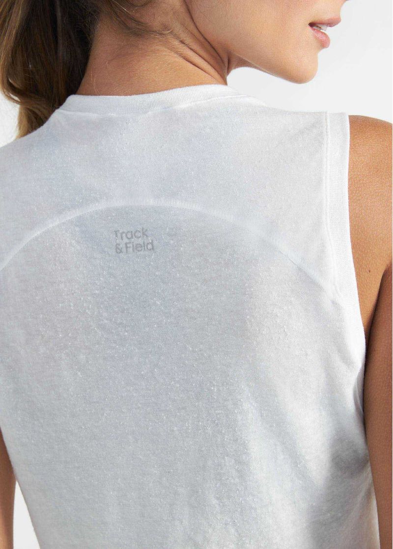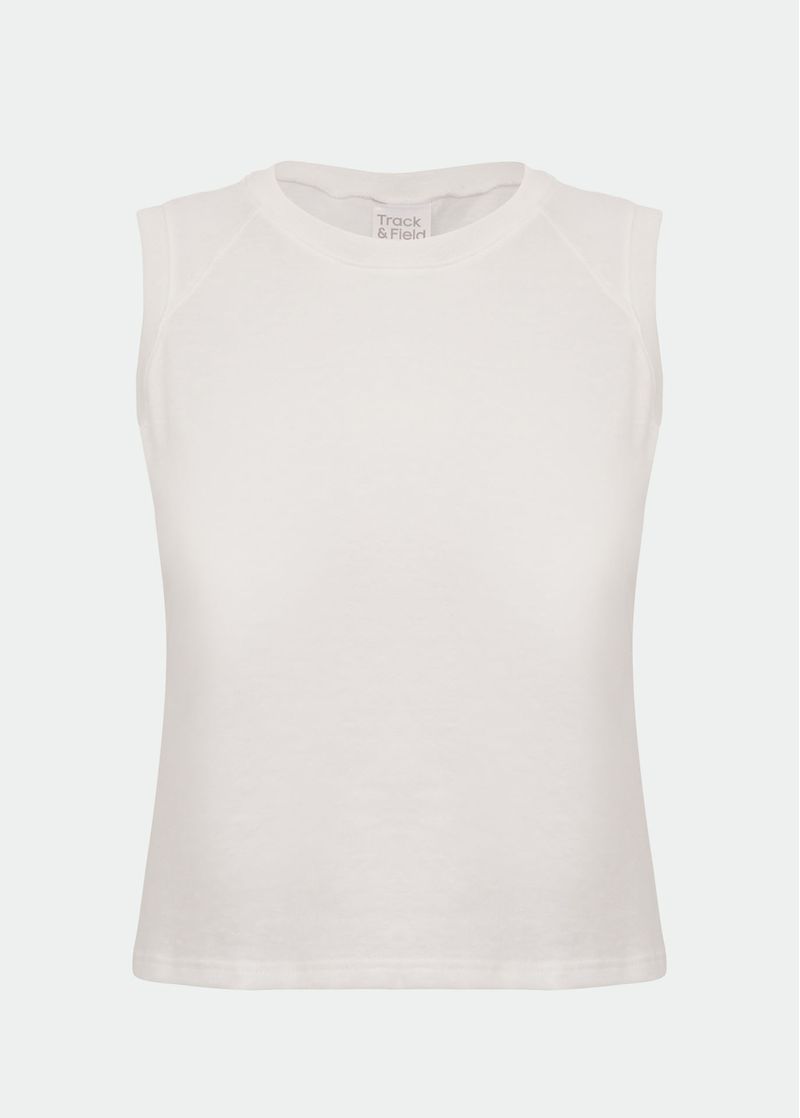 Para as amantes do cropped, um top com formato mais curto, mas com muito espaço para detalhes que fazem a diferença! Com decote redondo, punhos na gola e na cava em ribana, recortes frontais e traseiros, e logo Track&Field ton sur ton nas costas.